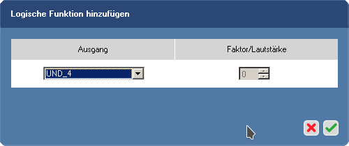 Unter der “Funktionsauslöser” Spalte links gibt es ebenfalls den Punkt “Logische Funktionen”. Hier wählen klicken wir ebenfalls auf das “+” Zeichen und wählen UND_4 aus. In der Liste “Ausgang” tauchen nur Logische Funktionen auf, die vorher schon einer Funktionstaste zugewiesen wurde! Daher ist die Reihenfolge beim Anlegen wichtig!